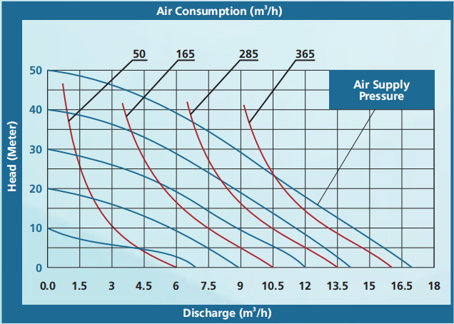 There installs each diaphragm in both aligned working cavities (A) & (B), which can be connected together with a central coupling lever. The compression air enters the air distribution valve from the air entrance of the pump, draw the compression air into one cavity through the air distribution mechanism, push out the diaphragm movement in the cavity. The gas in another cavity will be drained.