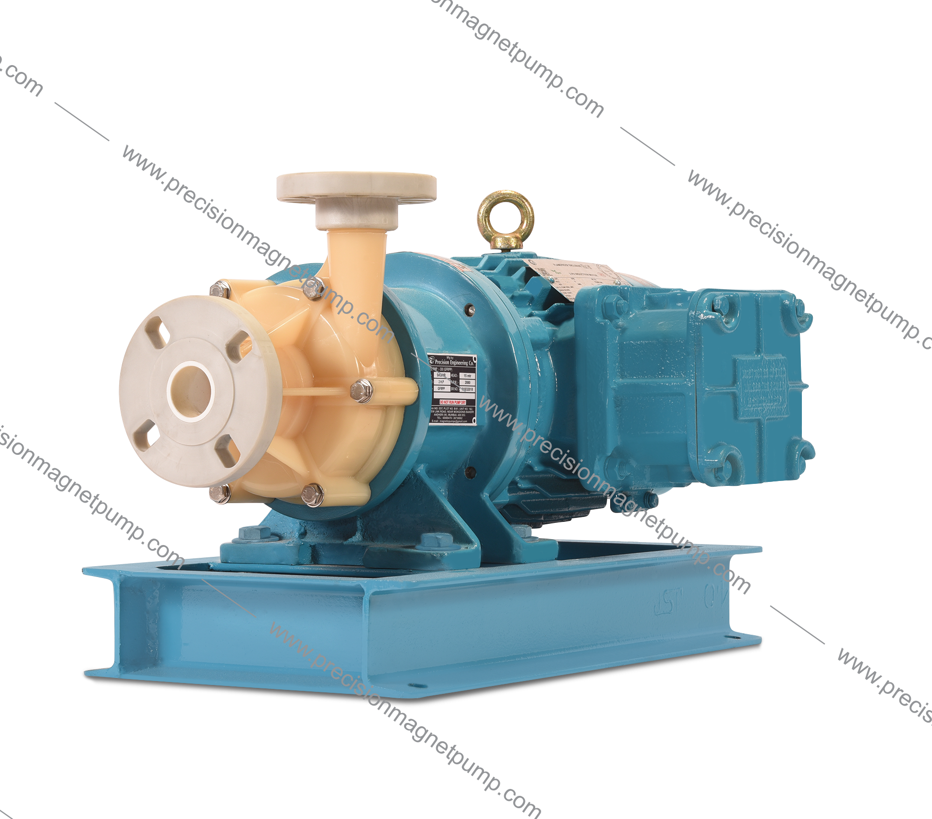 A group of drive magnets turns jointly with the electric motor shaft generating a magnetic torque that allows the second magnet group on which is moulded the impeller. These pumps do not have conventional mechanical shaft seals as pump chamber is shielded by casing and impeller is operated by magnets. This magnetic drive pump range due to absence of shaft seal can be installed in all plants and machines where leakage problems must be avoided