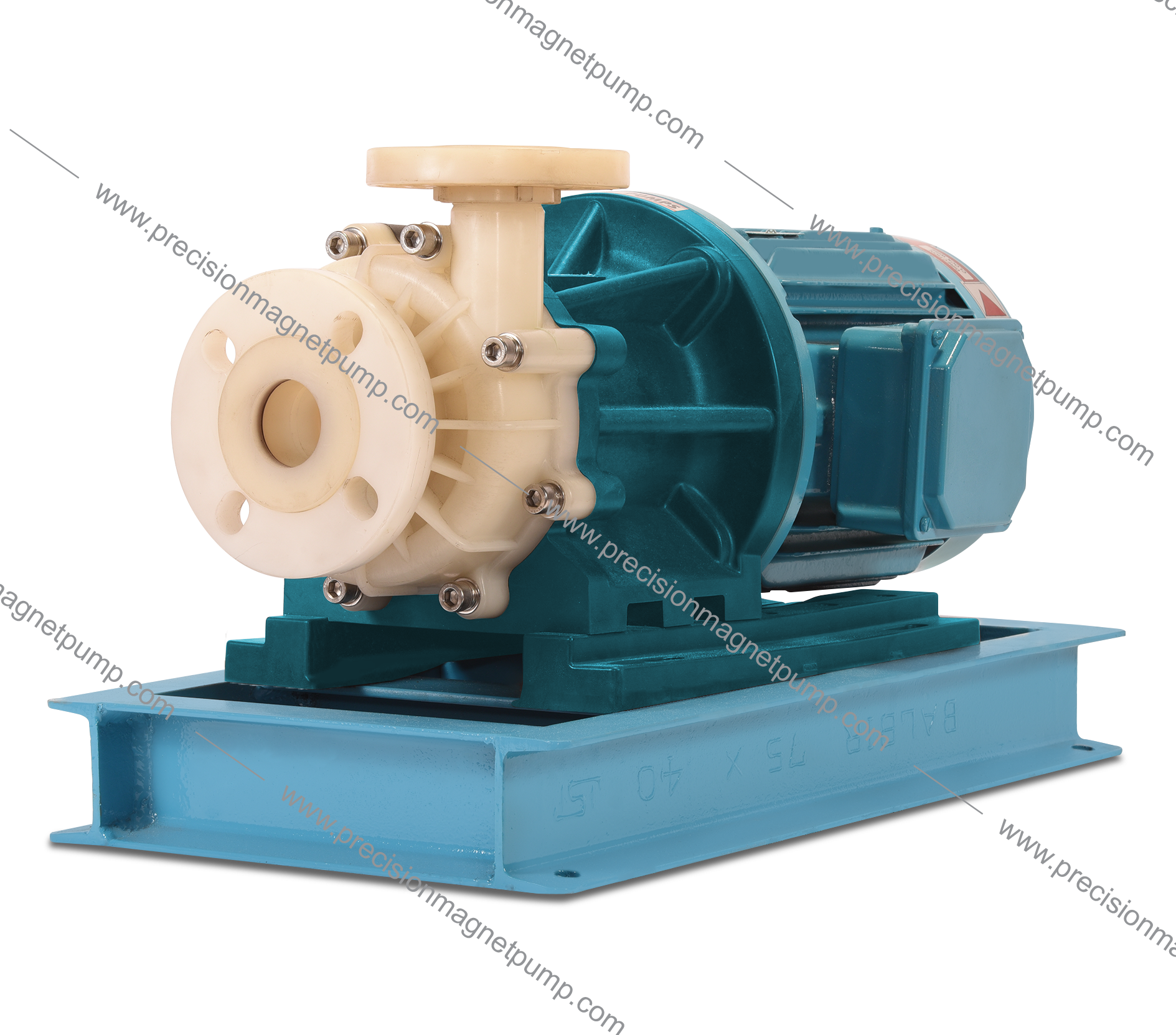 A group of drive magnets turns jointly with the electric motor shaft generating a magnetic torque that allows the second magnet group on which is moulded the impeller. These pumps do not have conventional mechanical shaft seals as pump chamber is shielded by casing and impeller is operated by magnets. This magnetic drive pump range due to absence of shaft seal can be installed in all plants and machines where leakage problems must be avoided.